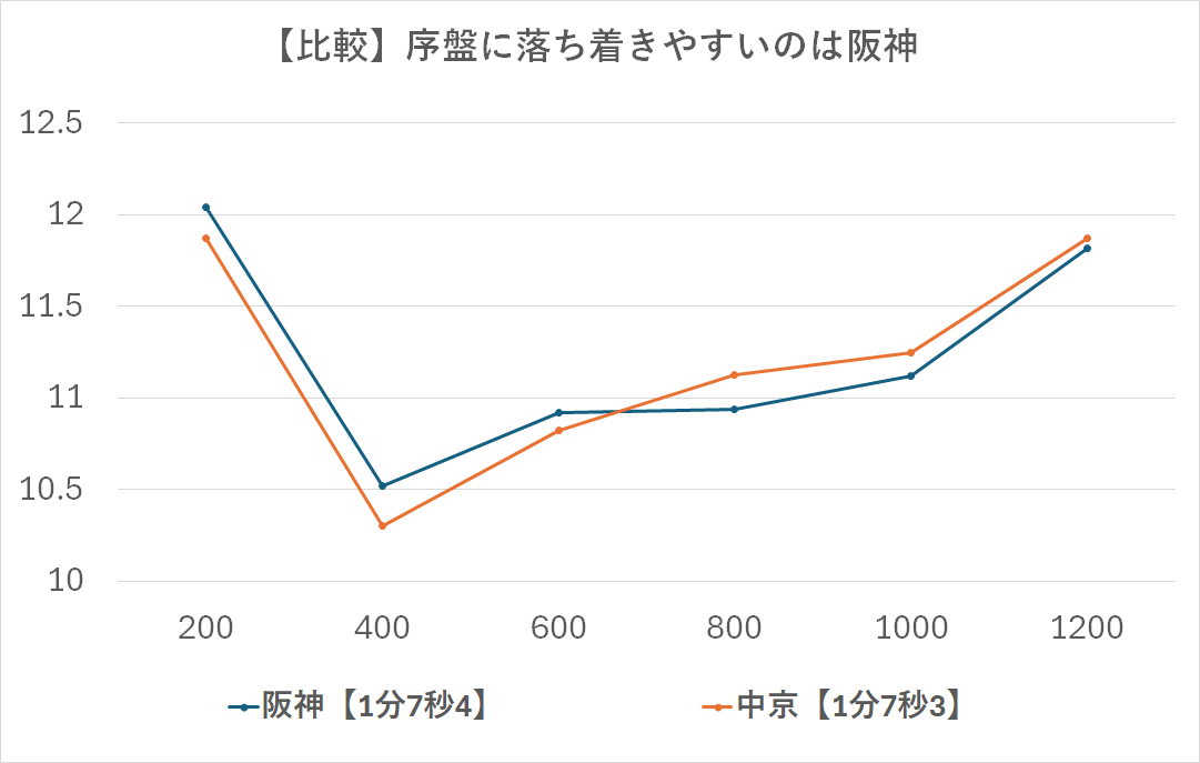 阪神の場合、序盤は比較的ゆったり入って、後半にかけてペースアップするっちゅうのが定番パターンや。